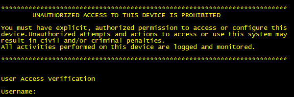 Taking Cisco’s Sample Legal Banner message from their Network Security Baseline page.